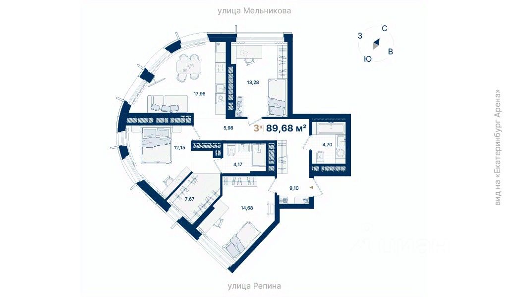Дома расположены на стрелке улиц Репина и Крауля, рядом со стадионом ''Екатеринбург Арена''. Здесь уже есть все необходимое для жизни: сады, школы, поликлиники и магазины.