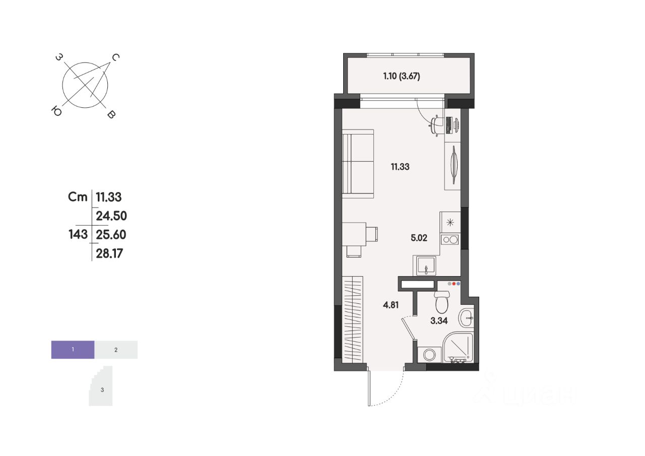 Общая площадь25,6 м2