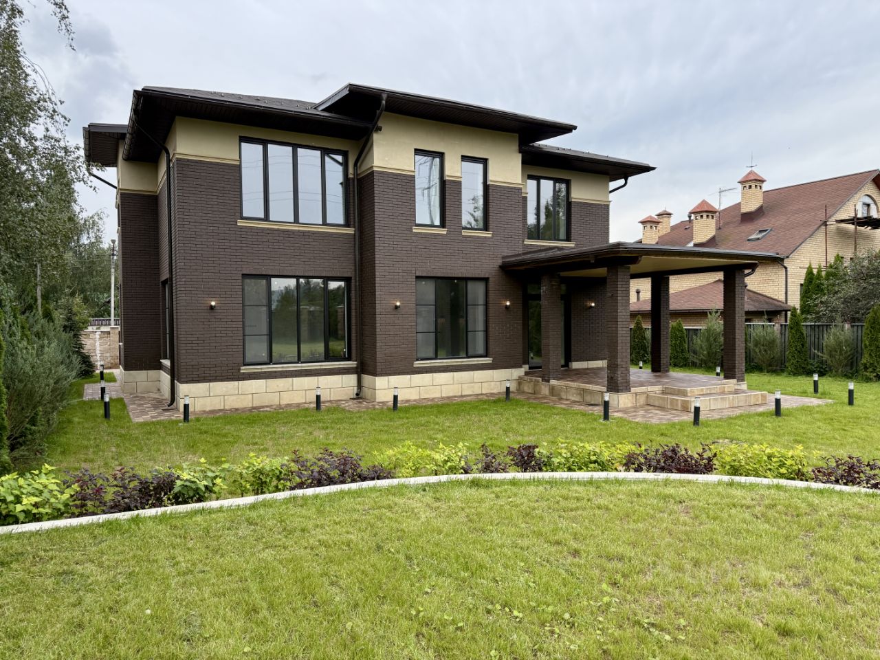 УЧАСТОК На просторном участке выполнен ландшафтный дизайн, участок правильной формы, засеян газоном. Вдоль забора высажены туи и ели. По периметру дома установлено уличное освещение. У дома оборудована площадка на 2 автомобиля.