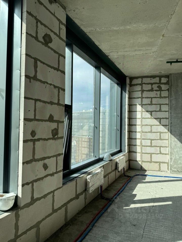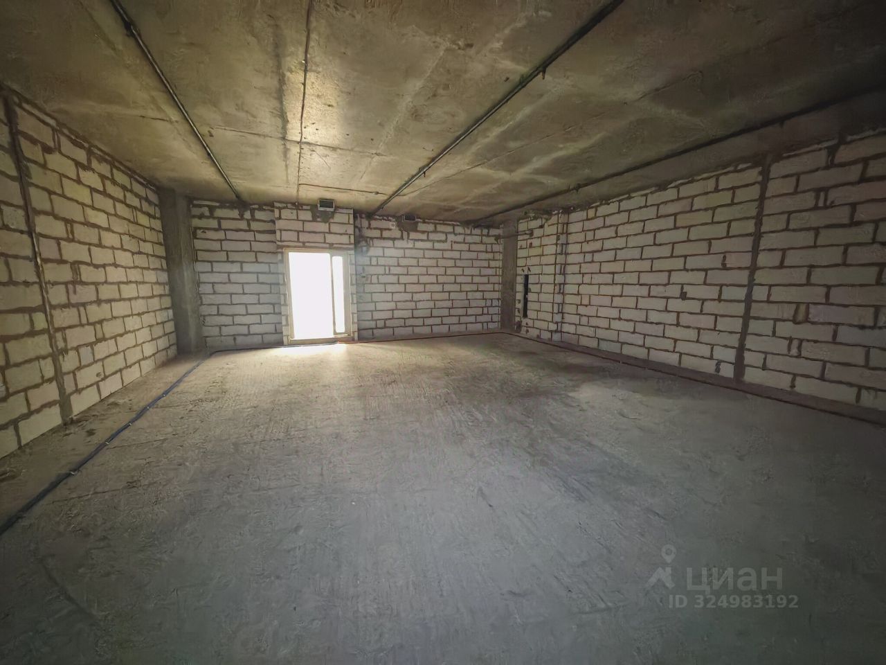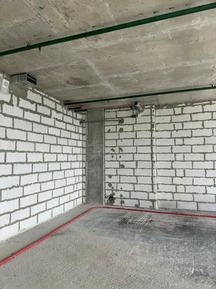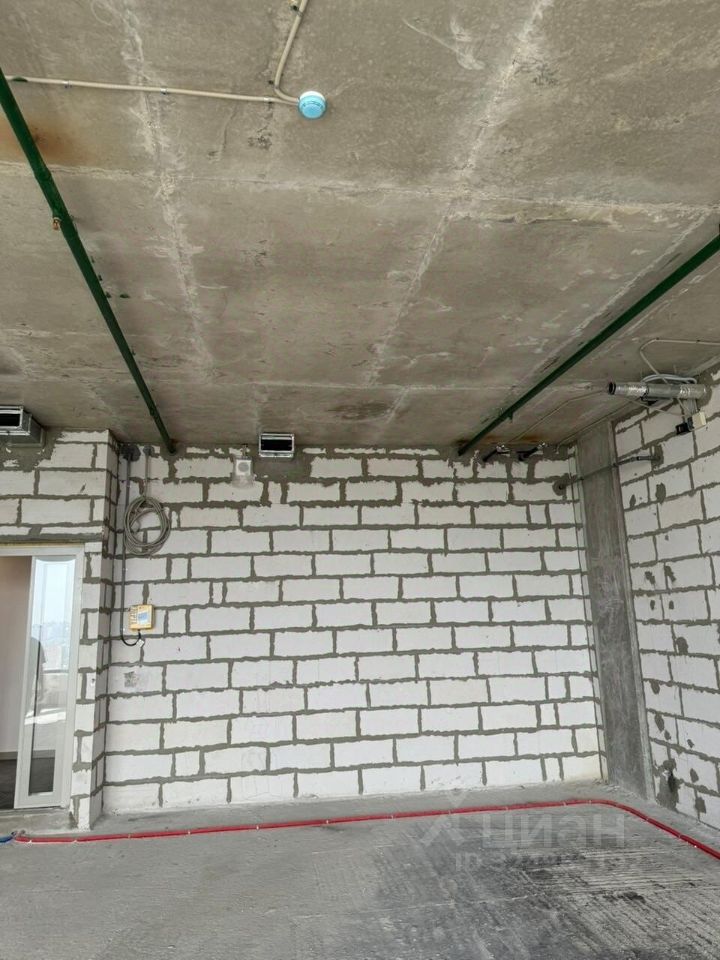 Современная инфраструктура: Здание новое, что гарантирует надежность всех коммуникаций. На фото видны уже смонтированные электрические и водопроводные системы (красные и синие трубы), что значительно упрощает и удешевляет последующую отделку.