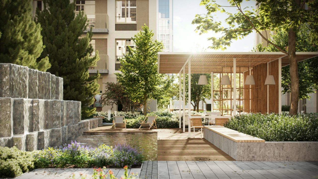 Локация квартала уникальна: с одной стороны он соседствует с активным уличным фронтом, а с другой — с тихим и спокойным озером с обильным озеленением. При этом участок неровный, перепад высот достигает 30 метров — это высота восьмиэтажного дома. Для разработки проекта мы пригласили лучшие архитектурные бюро из Китая: AEDAS и Turenscape. AEDAS специализируются на создании качественных общественных пространств, а Turenscape — на работах с экосистемой водных объектов. Архитекторы учли особенности местности и объединили урбанистический и природный ландшафты. #zMaUaU