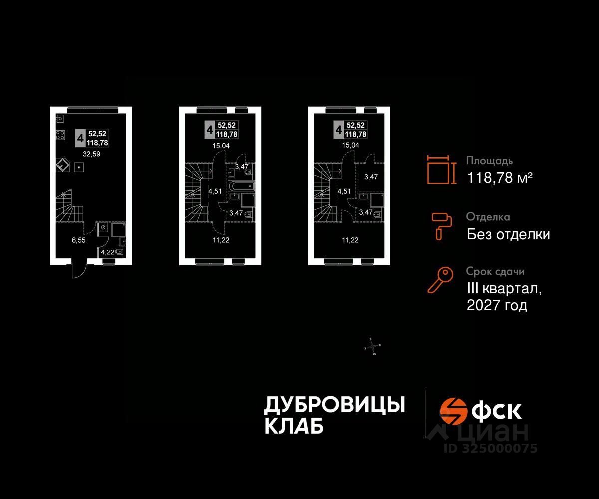 Прямая продажа от застройщика! Загородный жилой комплекс комфорт-класса. Продаётся 4-к таунхаус 5 общей площадью 118.78 кв.м. Без отделки.