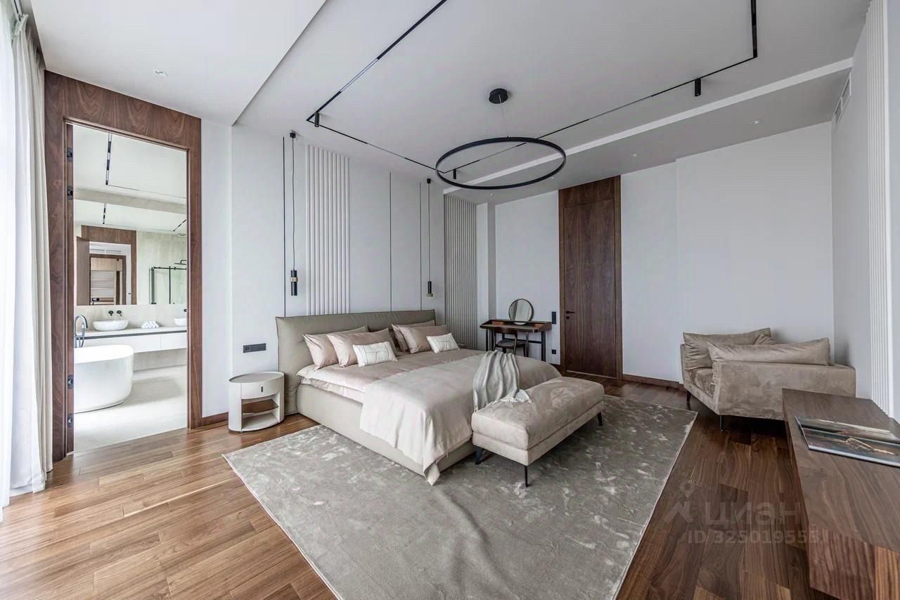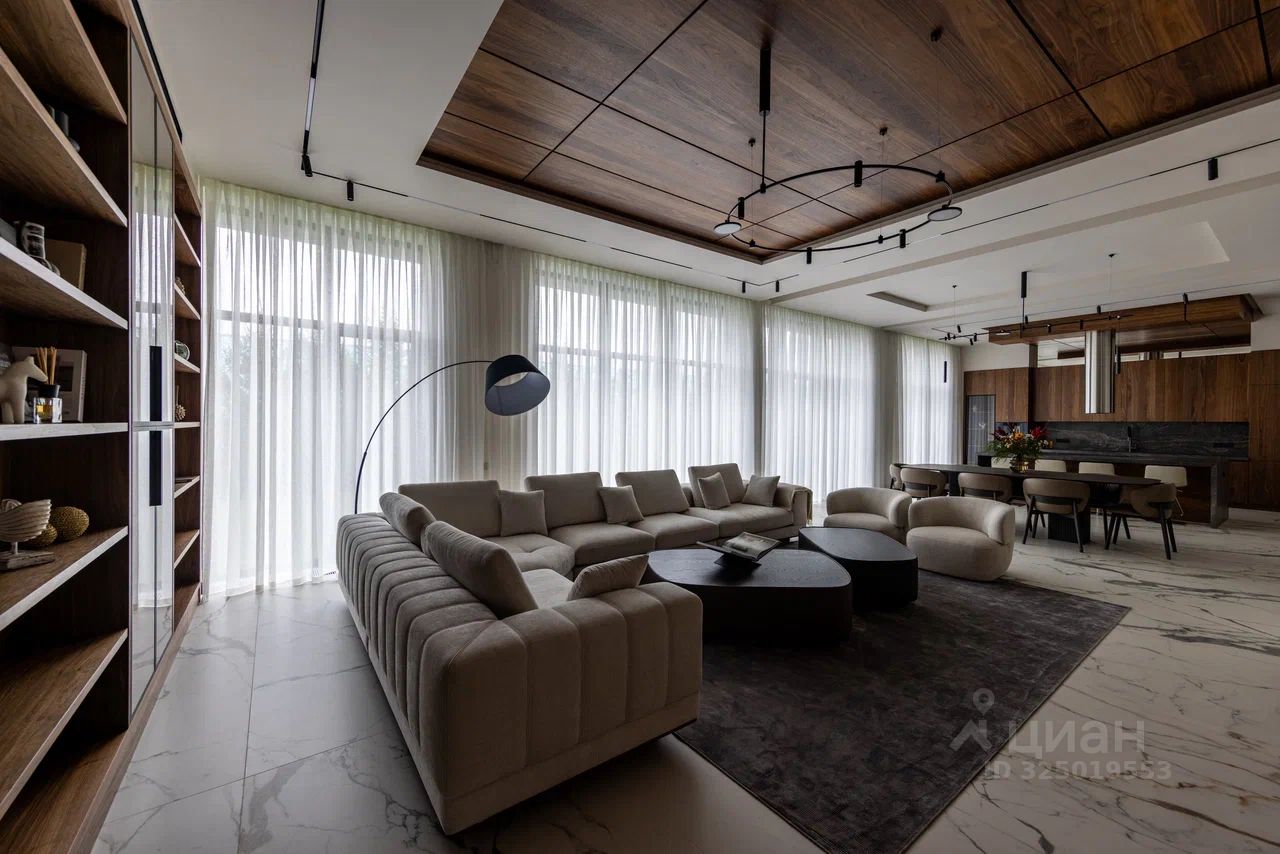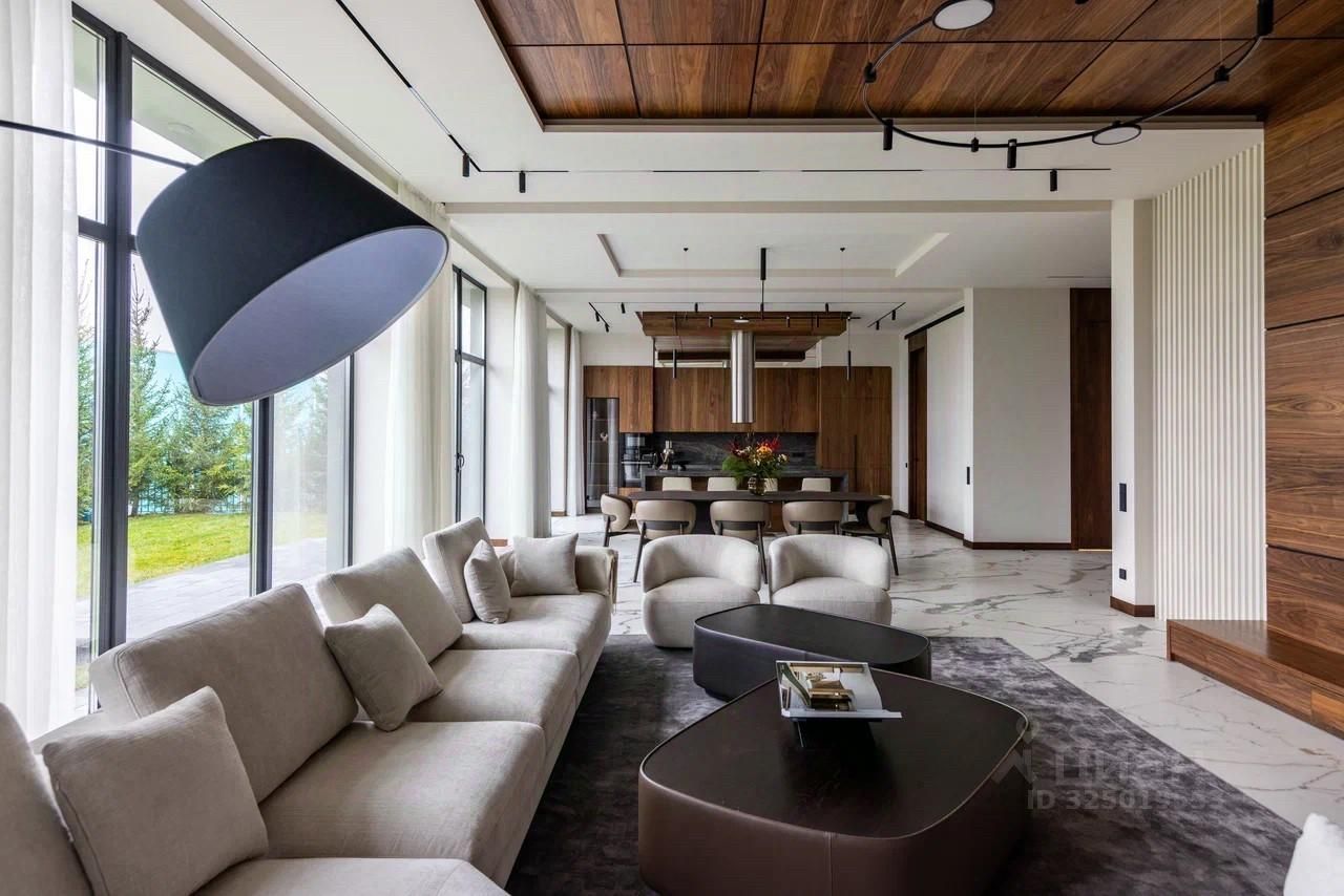 Дом в поселке Миллениум Парк расположен на Новорижском шоссе, в 20 км от МКАД. Площадь дома составляет 437 м², а участок — 8 соток. В доме пять спален и шесть санузлов.