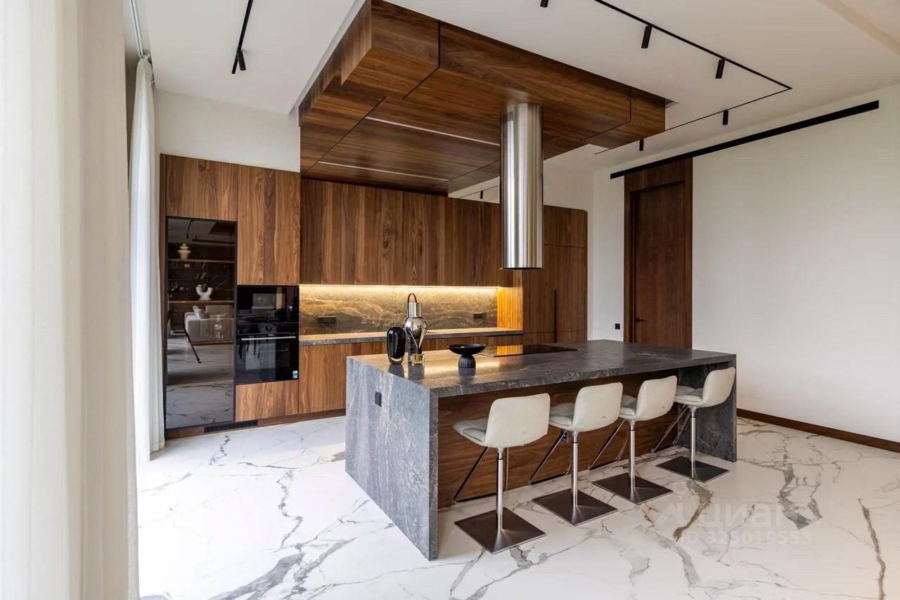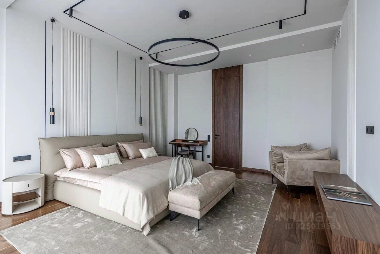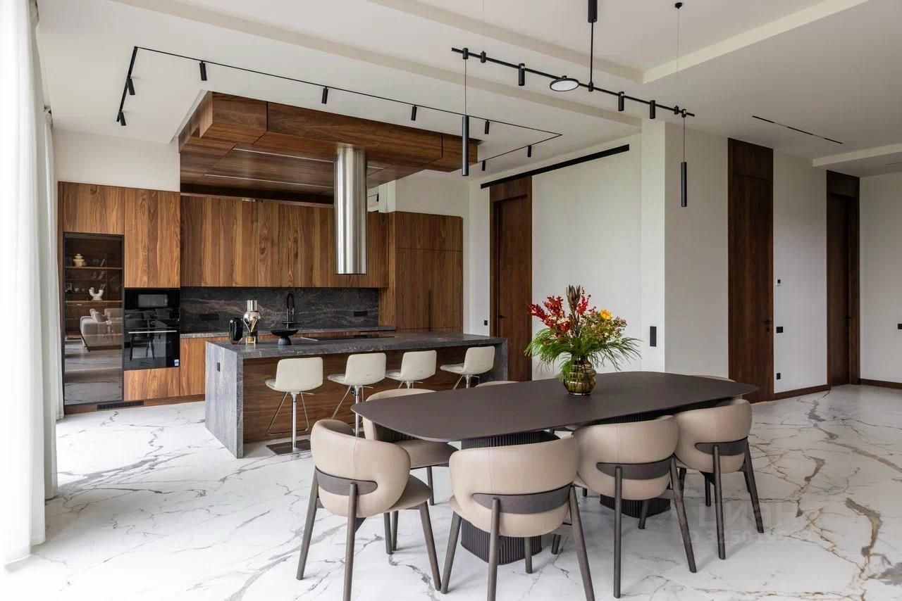 Дом в поселке Миллениум Парк расположен на Новорижском шоссе, в 20 км от МКАД. Площадь дома составляет 437 м², а участок — 8 соток. В доме пять спален и шесть санузлов.