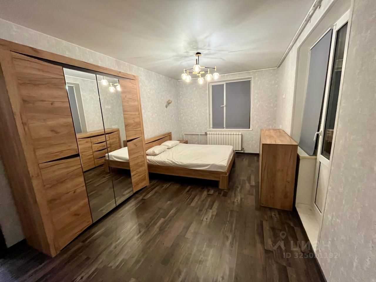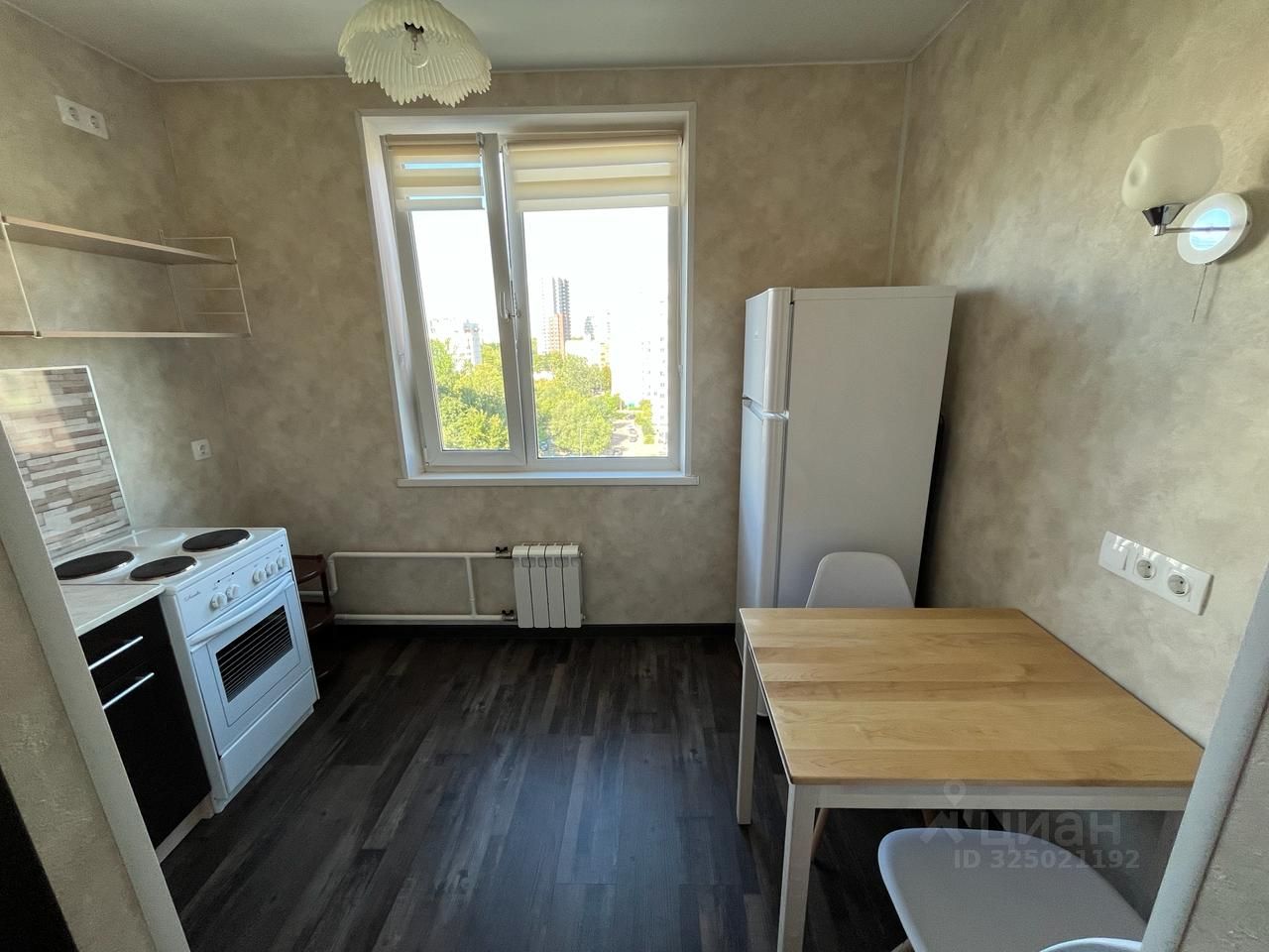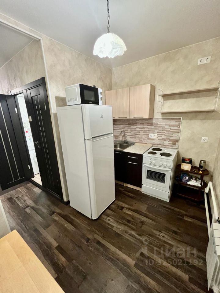 В квартире есть всё необходимое для жизни: кухонная мебель, холодильник, стиральная машинка, мебель в комнате, двуспальная кровать.