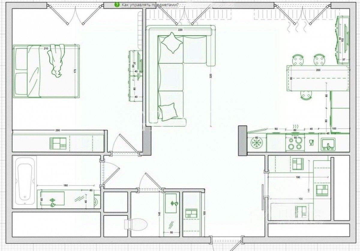 - просторная кухня-гостиная,