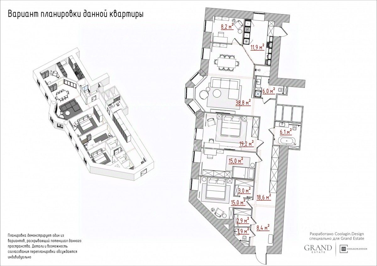 Прилагаются варианты перепланировки квартиры, как для собственного проживания, так и для переоборудования под студии и сдачи в аренду.