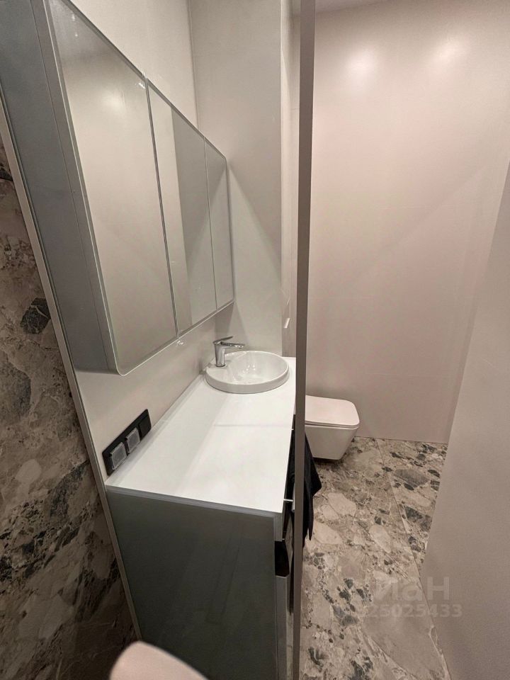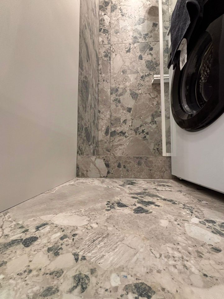 Санузел: душевая с остеклением в потолок — светлая, просторная. Стиралка, шкафы с хранением. Датчики протечки.