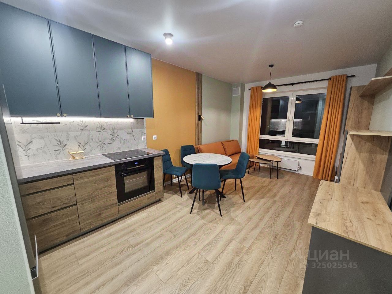 В кухне-гостиной (18кв.м) современный кухонный гарнитур, посудомоечная машина, большой холодильник, стеклокерамическая варочная поверхность на четыре конфорки, духовка. Также есть полноценный обеденный раскладной стол, двуспальный диван, компьютерный стол. Все расположено удобно и грамотно, достаточно свободного пространства и света!
