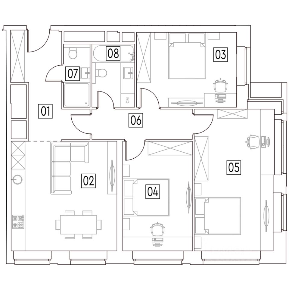 Свободная планировка без отделки — идеально под ваш дизайн.