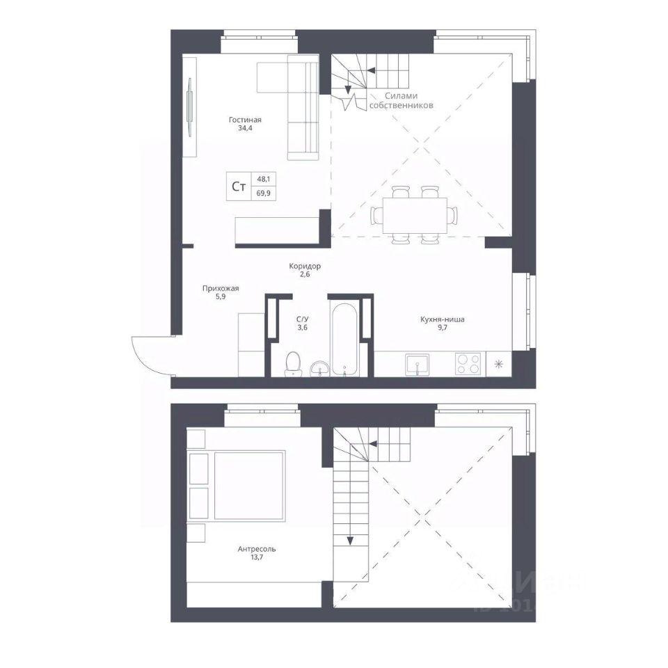 Жилая площадь48,1 м2
