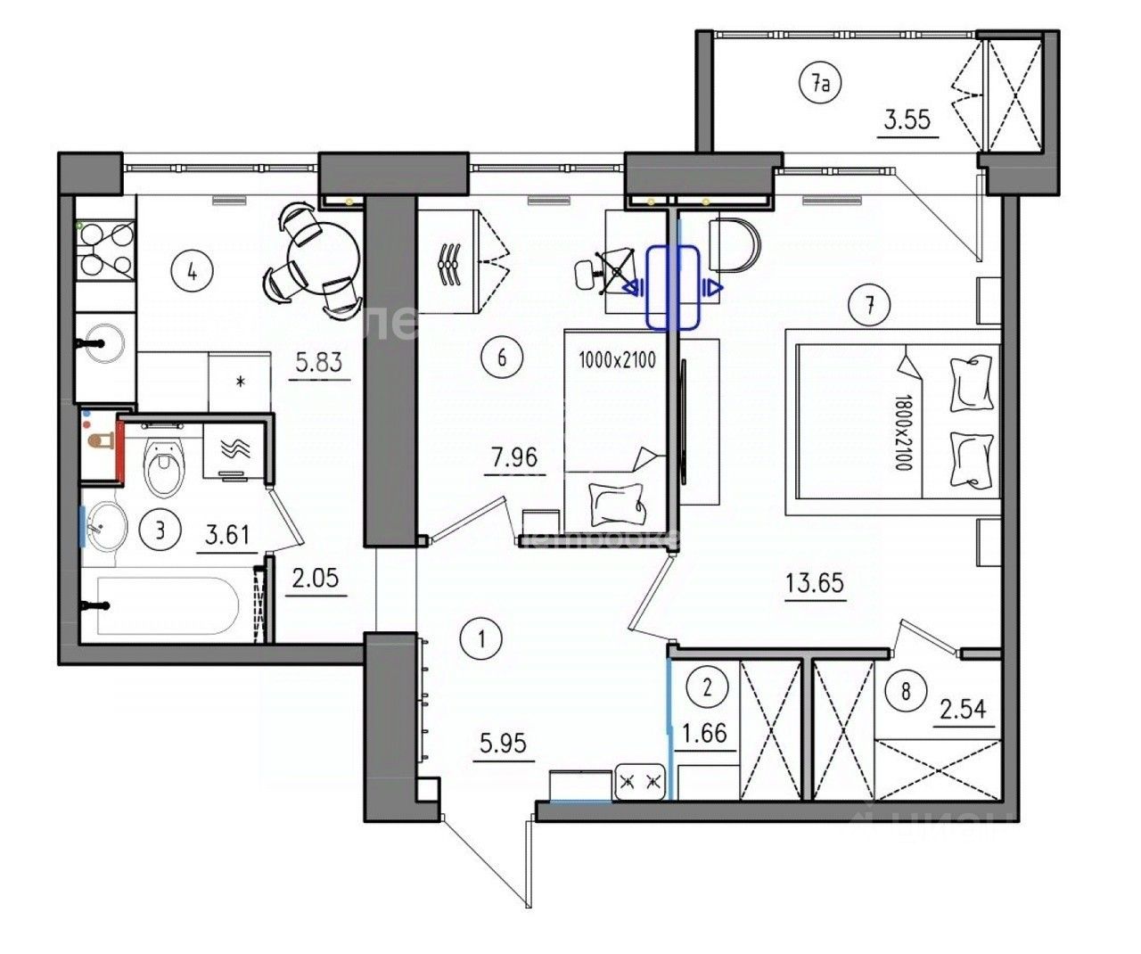 Квартиру можно приобрести в ипотеку по ставке банка 12,25%.