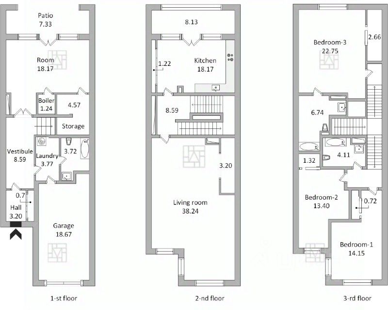 A comfortable three-storey house is located in a beautiful gated community near the city center, surrounded by beautiful park Pokrovskoe Streshnevo. House with 3 bedrooms, living room. 3 bathrooms. Garage. The house can be furnished upon request.