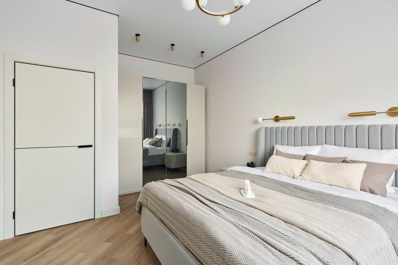 В квартире стены под покраску, сантехника Rehau. Полы кварц винил Tarkett, в прихожей и санузле тёплый пол, керамогранит. Межкомнатные двери эмаль, входная металлическая дверь Le-gran. Окна пластиковые стеклопакеты Rehau с повышенной шумоизоляцией. Планировка: кухня-гостиная (20 кв.м), спальня (17 кв.м) + спальня (11кв.м), просторный санузел (6.9 кв.м), прихожая с гардеробной нишей. Санузел совмещенный, полностью отделан плиткой Kerama Marazzi, установлена качественная сантехника, встроенный шкаф под стиральную машину. Гардеробная (4 кв.м) оборудована как дополнительная зона хранения. В квартире остается все как на фото ! Встроенный кухонный гарнитур со столешницей из искусственного камня, вся техника Weissgauff - варочная панель, духовой шкаф, посудомоечная машина, холодильник, стиральная машина с функцией сушки.