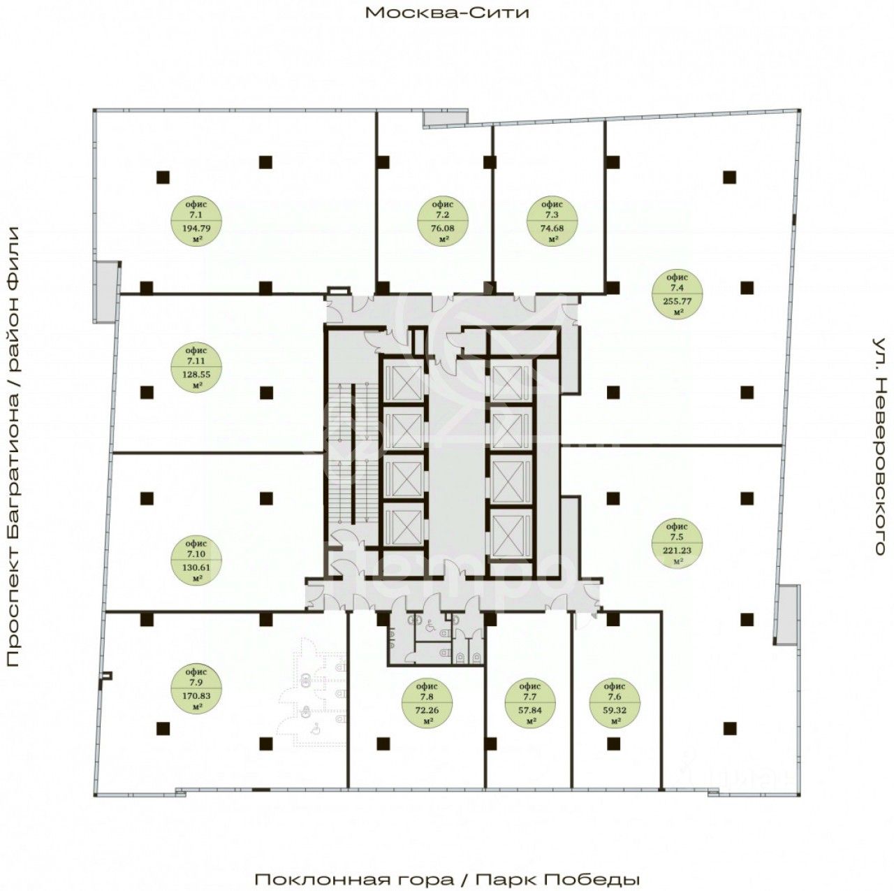 Архитектура и дизайн: Панорамное остекление в каждом офисном блоке, лаконичность и строгость форм. Этаж разделен на 12 офисных блоков площадью от 64,5 до 270 кв.м. Внутренние пространства сочетают в себе комфорт, камерность и технологии: просторные офисы с высотой потолков 3,7 м, приватные офисов с террасами, highspace-офисы с высотой потолков 7,5м, зоны отдыха, двухсветное лобби с потолками 11,5 метров и площадью 250 кв.метров с приватной зоной для отдыха и встреч.