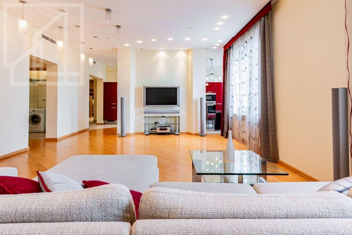 Планировка: гостиная, две уютные спальни, кухня, три санузла (с джакузи и душевой кабиной), гардеробная, постирочная. Потолки 3,2м. Выполнен современный ремонт в светлых тонах. Квартира полностью меблирована. Имеется вся необходимая для комфортного проживания техника.