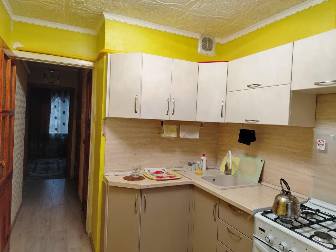 Общая площадь-44.5 м², Санузел раздельный(в плитки) , можно заехать и жить. Балкон застеклён, Окна везде ПВХ на кухни в маленькой комнате, заменены радиаторы отопления.