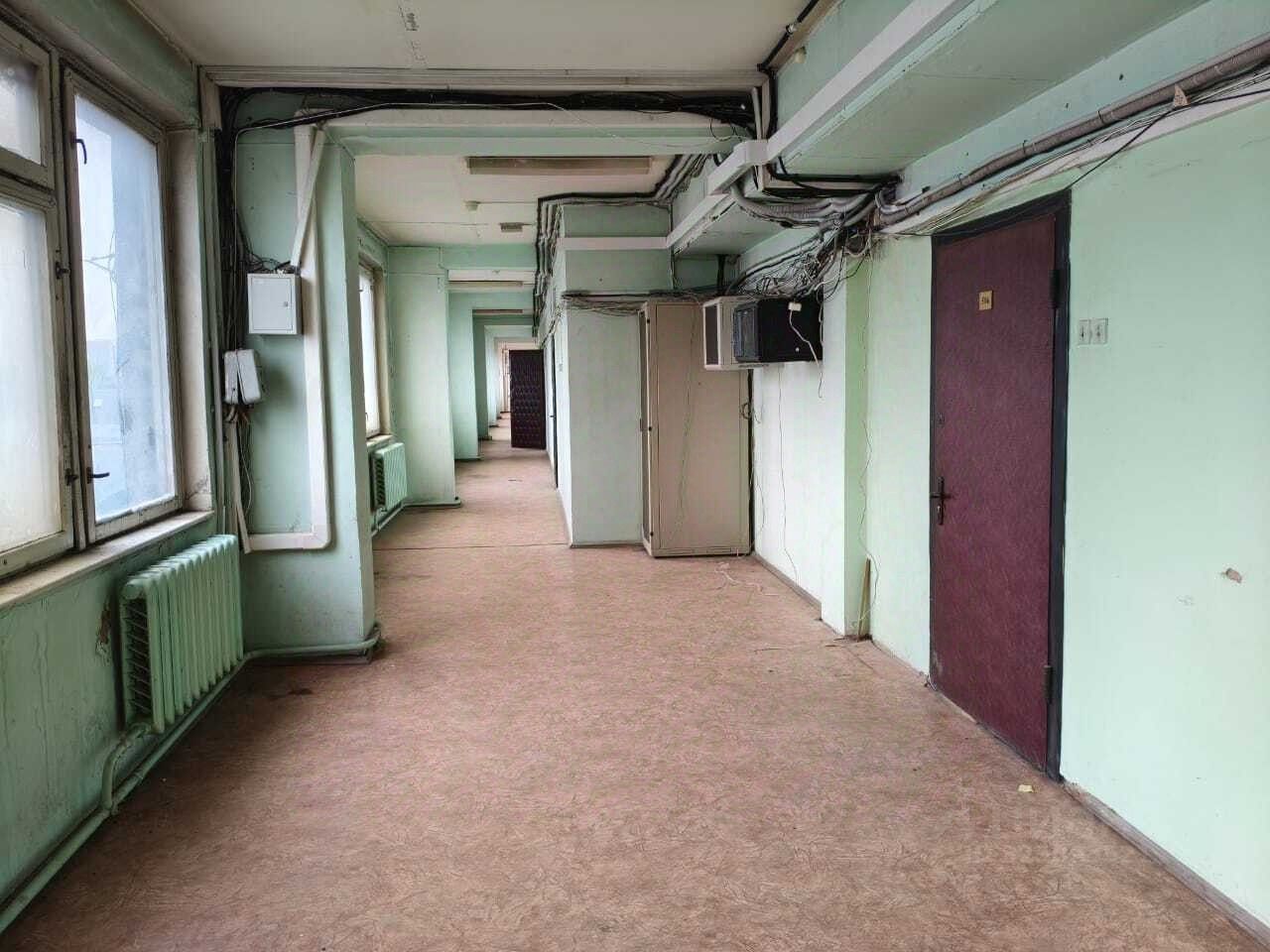 Высота потолка 3 м, 5-й этаж административного здания, общий вход, пропускной режим, лифта нет.