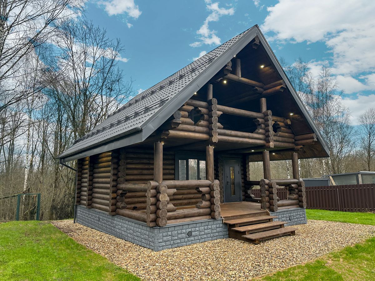 Новый дом 112 м² из толстого сухого бревна в поселке бизнес-класса Эко Озеро. Лес и озеро по границе участка. Полностью готов к проживанию.