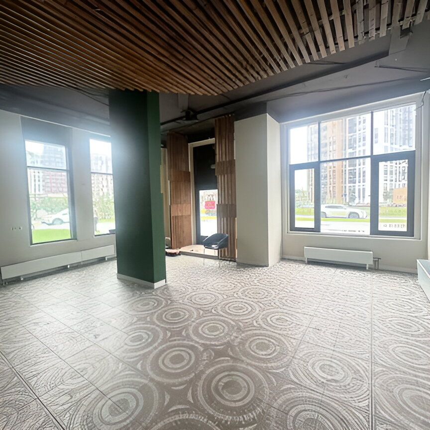 Параметры помещения. Первый этаж 18-этажного жилого дома. Площадь помещения: 84,2 м². Панорамное остекление вдоль всего фасада, открытая планировка, отдельный вход с первой линии. Высота потолков — 3,9 м, электричество: 60 квт, городские коммуникации, независимая вытяжка, есть возможность получения алкогольной лицензии. Помещение с ремонтом и подходит под любой вид деятельности.