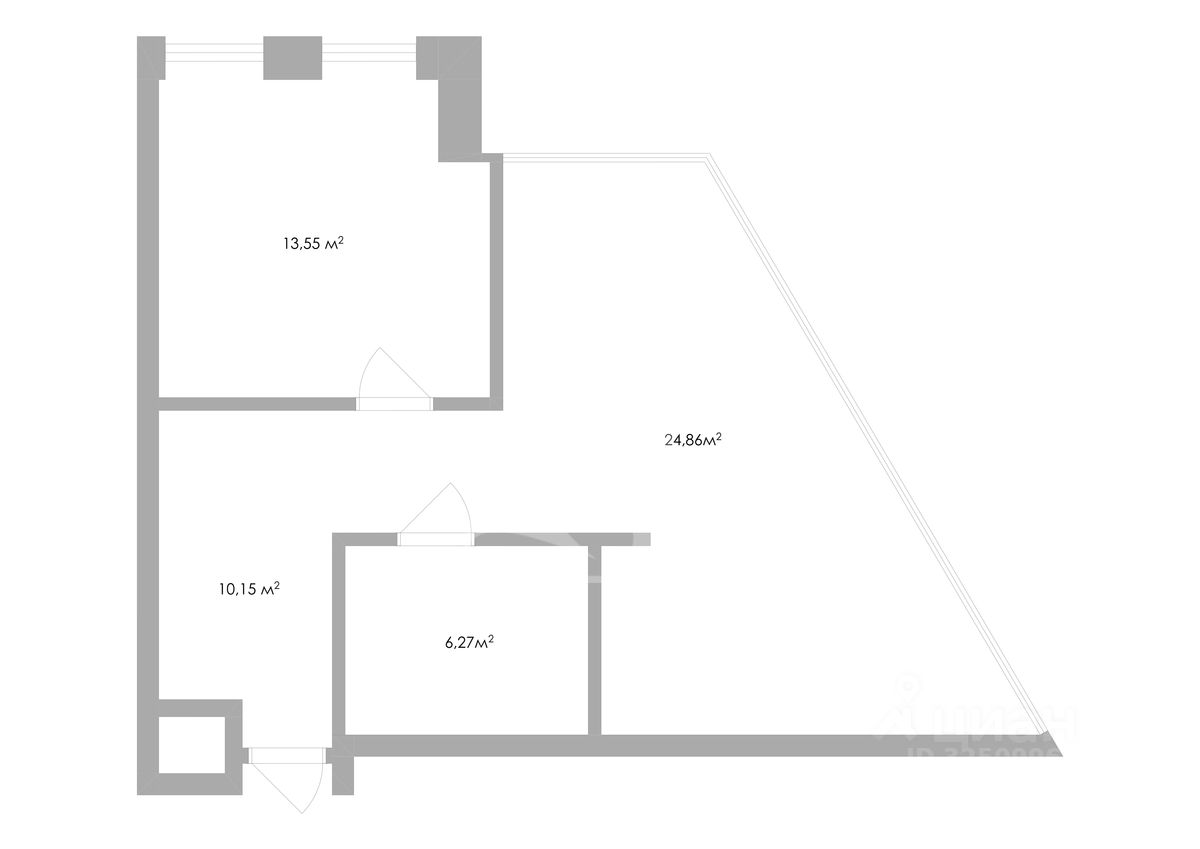 Планировка: кухня-гостиная (25 кв. м), спальня (14 кв. м), совмещенный с/у.