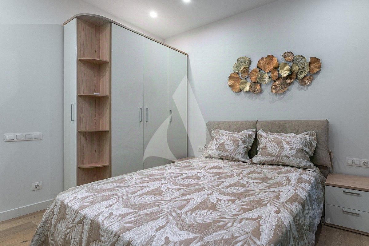 Апартамент полностью меблирован и оснащен всей необходимой бытовой техникой. Много зон хранения для одежды.