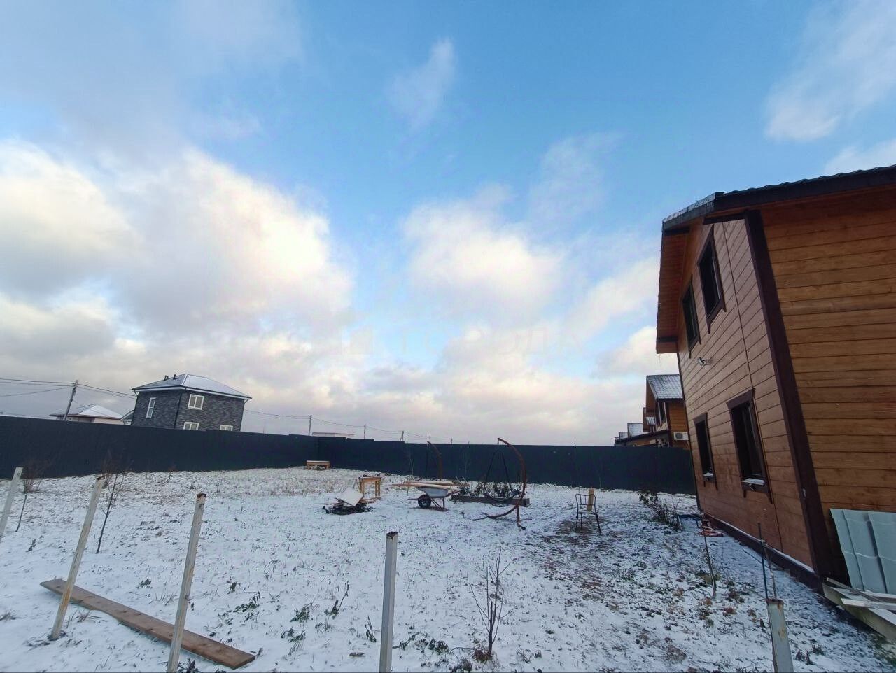 На участке есть сваи для строительства бани или гостевого дома.