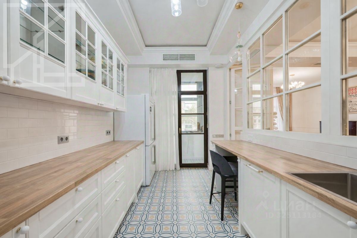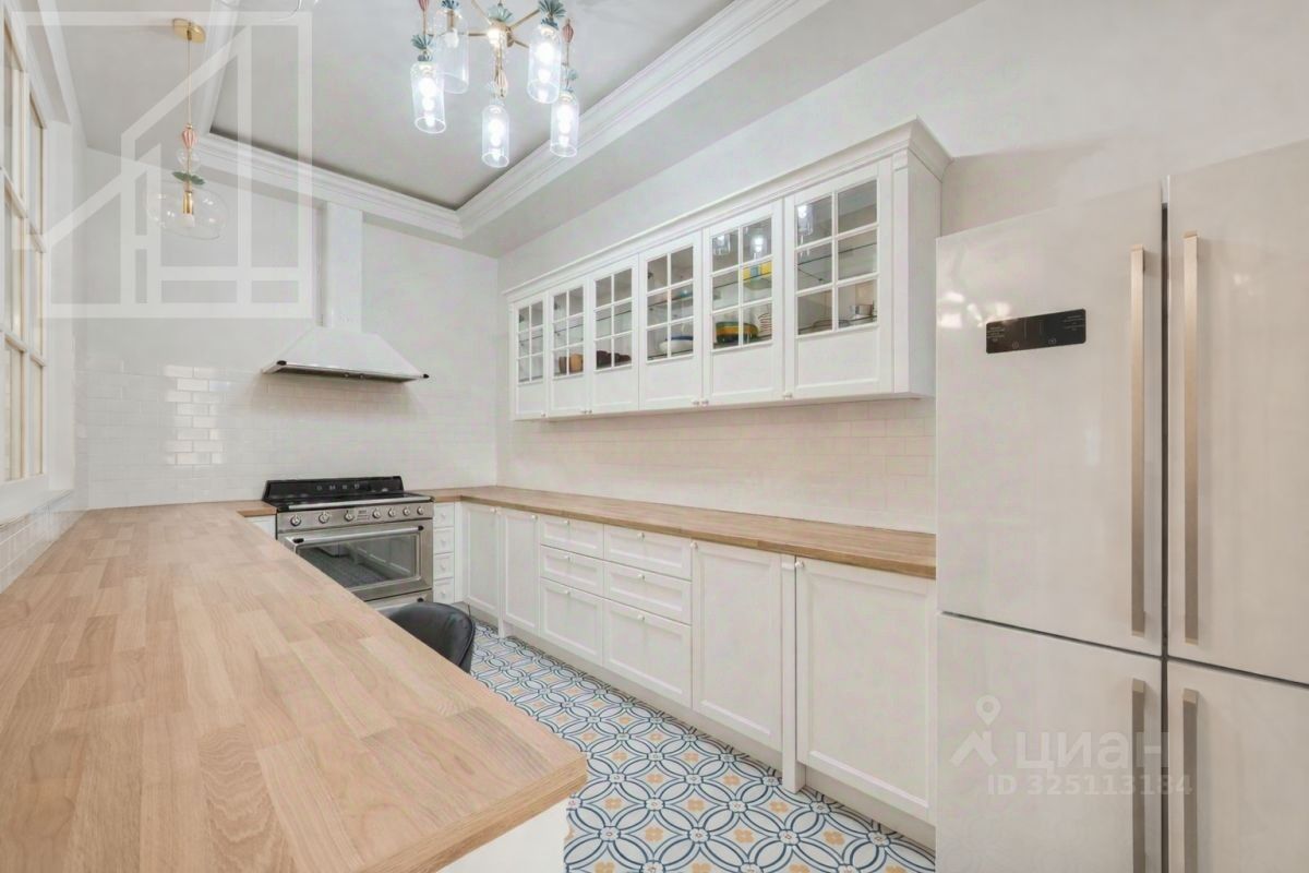 Планировка: гостиная с обеденной зоной, кухня, мастер-спальня с гардеробной и санузлом, детская со смежной комнатой-спальней, детская, санузел с ванной, гостевой санузел с душем, гардеробная при входе. Окна выходят во двор. В квартире выполнен авторский ремонт в светлых тонах. Квартира частично меблирована и оснащена всей необходимой техникой.