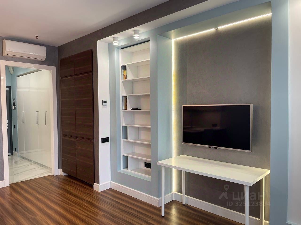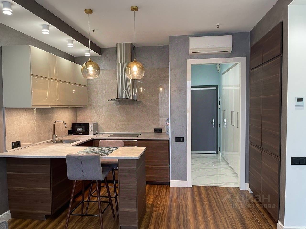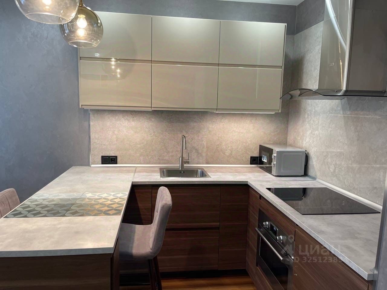 В апартаментах выполнен дизайнерский ремонт, который подчеркивает уникальность и современность пространства. Уютная кухня площадью 7 кв. м оборудована всем необходимым для комфортного проживания. Совмещенный санузел оформлен в современном стиле и оснащен качественной сантехникой. Все детали интерьера тщательно продуманы для удобства и функциональности.