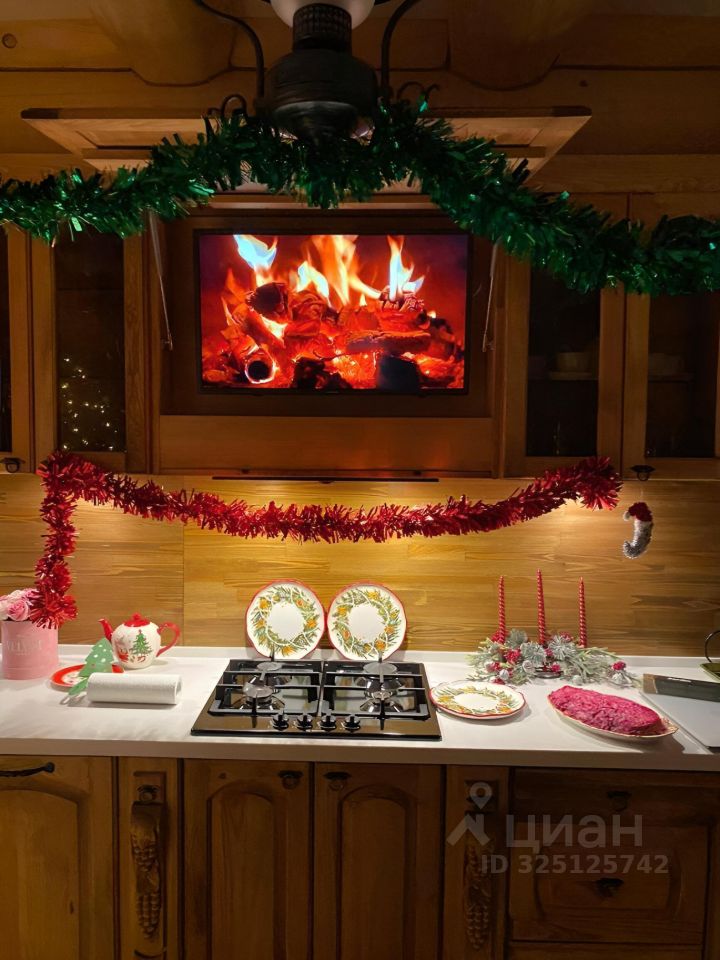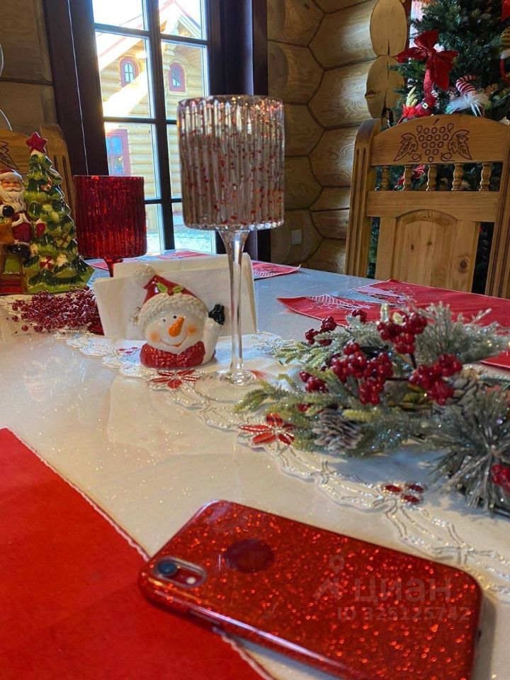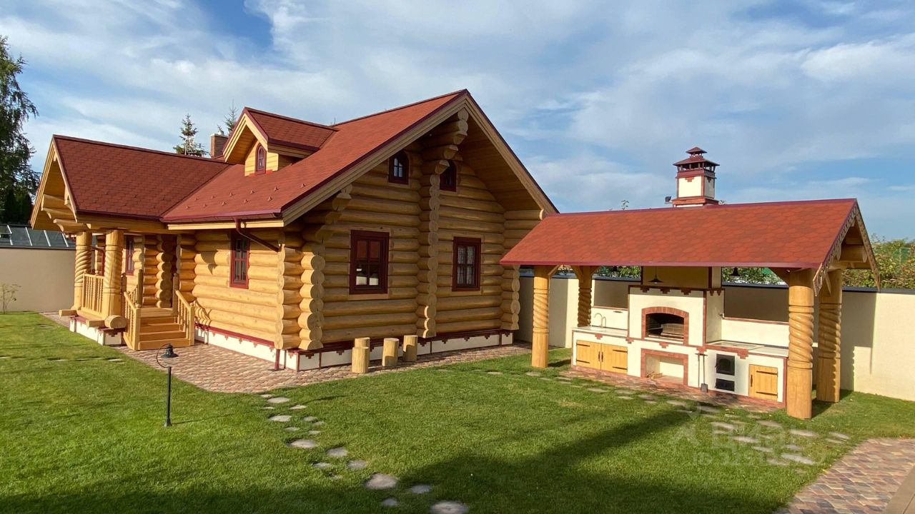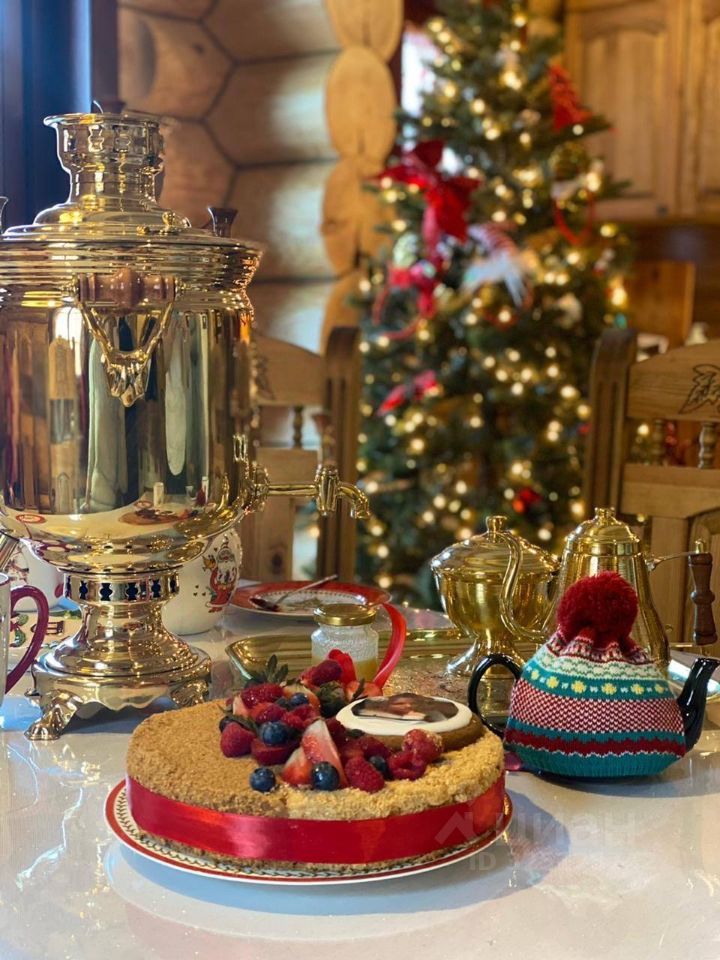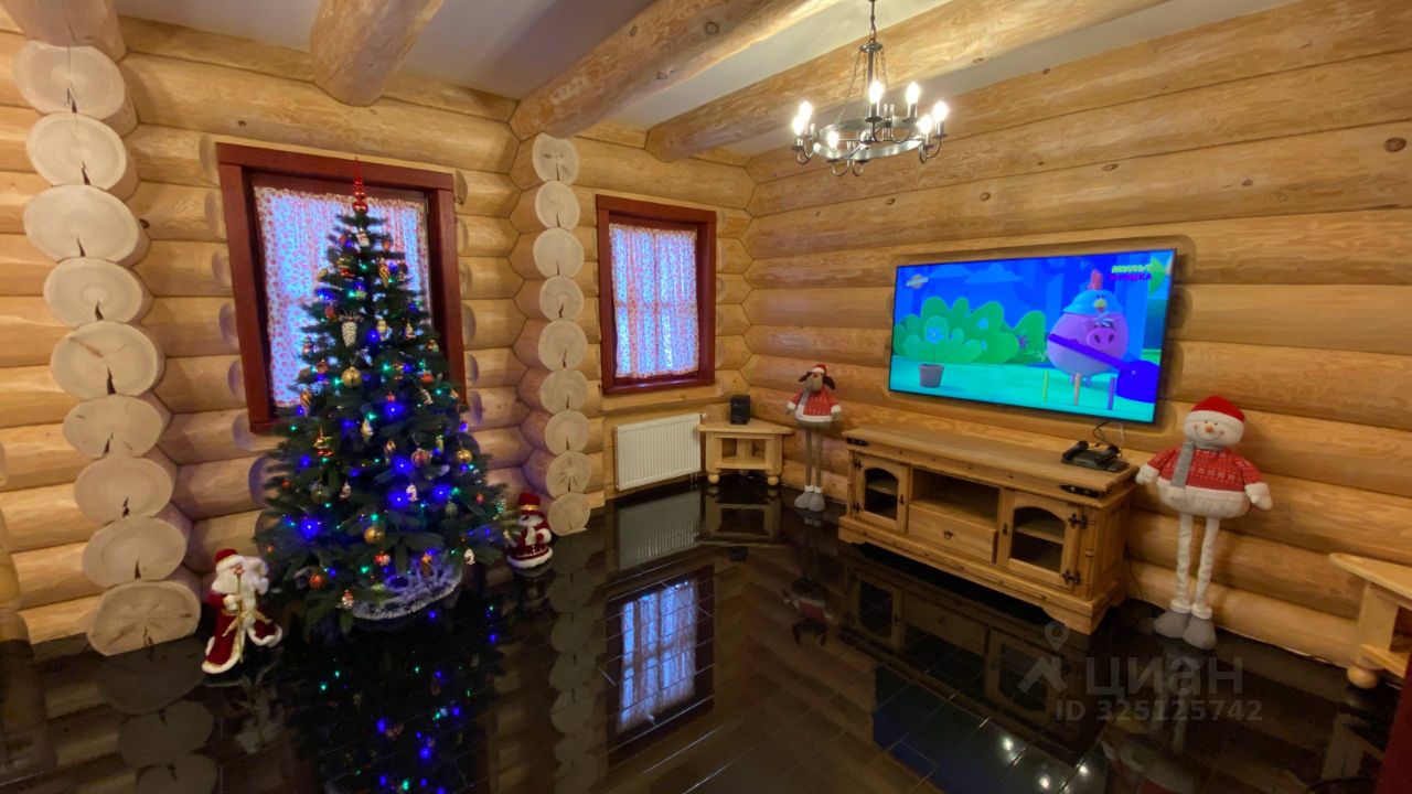 О доме: •авторский проект в русском стиле (по эскизам Васнецова), •ручная рубка из вологодской сосны, •отделка и декор — массив лиственницы, •окна из массива дерева (Германия), •заказная мебель, •все коммуникации — центральные.
