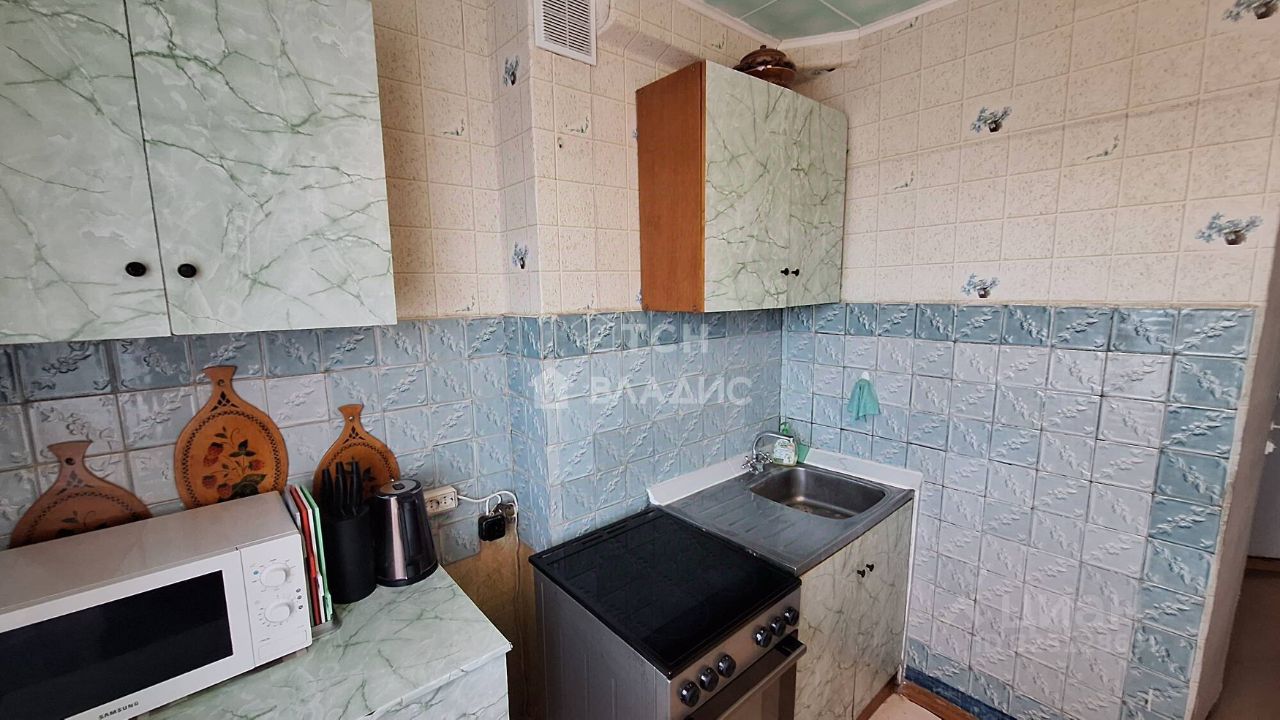 Удачная планировка-распашонка с просторной кухней, на которой установлена электрическая плита. Санузел раздельный в плитке. В туалете водонагреватель, что удобно в период отключения горячего водоснабжения на профилактические работы. В ванной комнате место под стиральную машину.