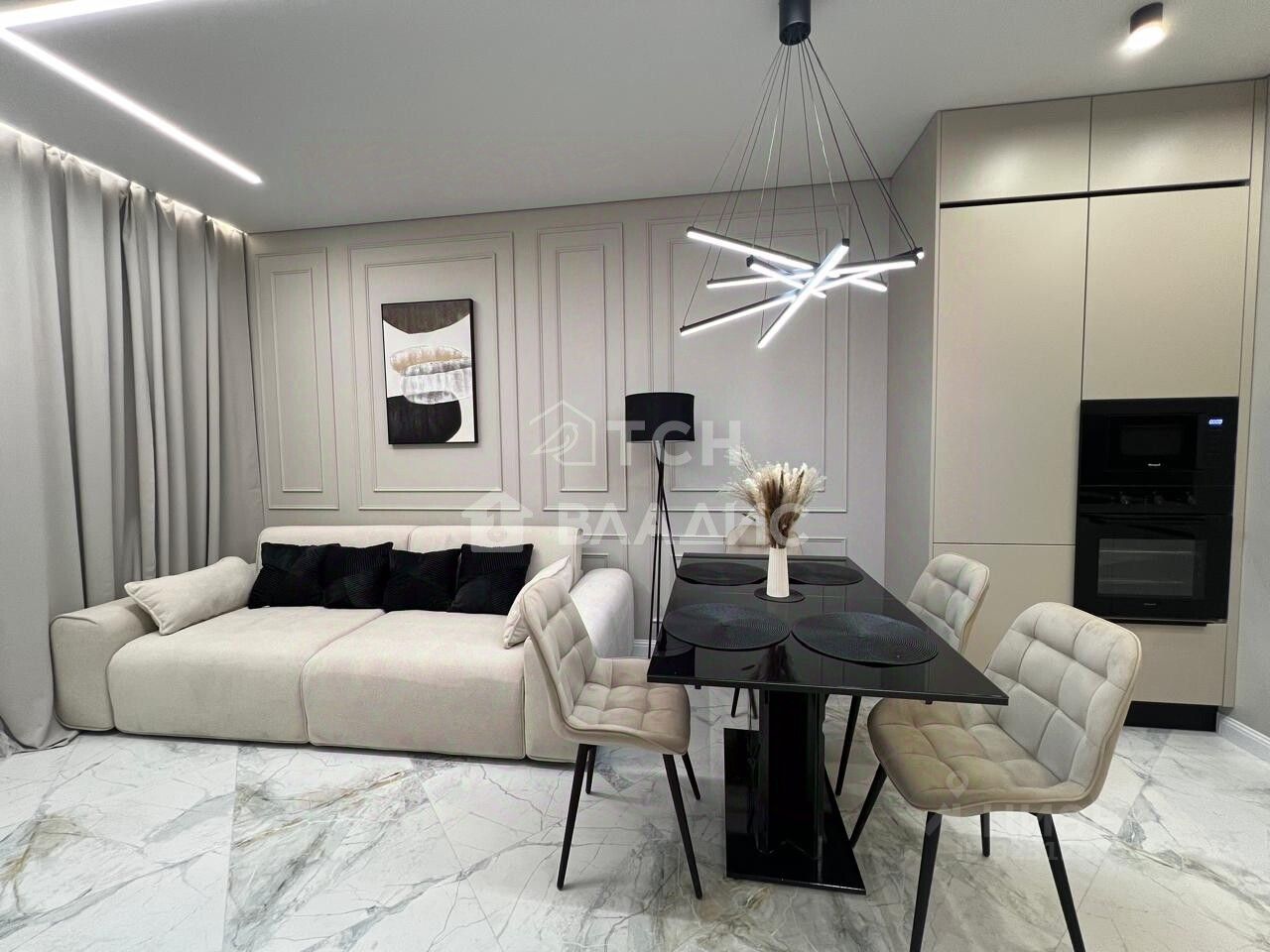 Представляем вашему вниманию стильную квартиру формата евро-3, расположенную на 18 этаже 27-этажного жилого комплекса бизнес-класса ''Лайм'', 2022 года постройки.