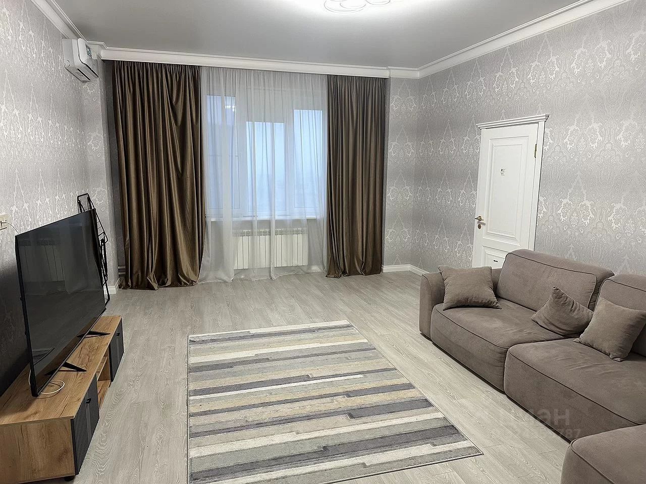 В квартире сделан качественный евроремонт. Внутри есть всё необходимое для жизни: кондиционер, холодильник, посудомоечная машина, телевизор и стиральная машина. В комнатах и на кухне установлена мебель. Планировка квартиры продумана: совмещённый санузел с ванной, окна выходят во двор, что обеспечивает тишину и уют. В квартире также есть лоджия и балкон.