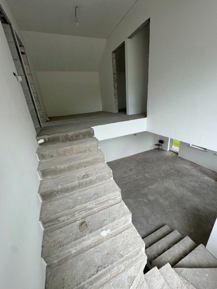 Прочный монолитный фундамент с двойным армированием, стены из блоков с облицовкой кирпичом ЛРС. Все инженерные системы готовы: скважина (45 м), септик (8 м), электроснабжение 30 кВт, дренаж по периметру. Запланирована газификация (2026 г.).