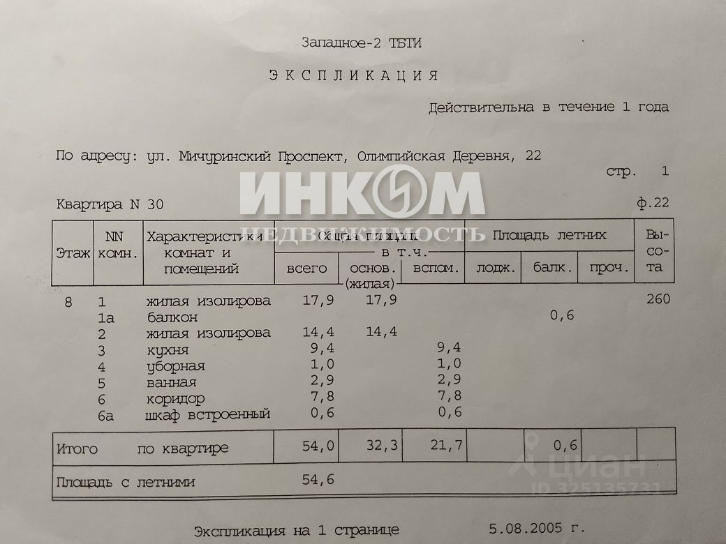Номер лота: вт-0430700. '' Квартира расположена в ЗАО, районе Тропарево-Никулино, на 8 этаже 16-этажного панельного дома серии П-3, построенного в 1978 году. '' Площадь: общая - 54,6 м2, жилая - 32,3 м2, кухня - 9,4 м2.