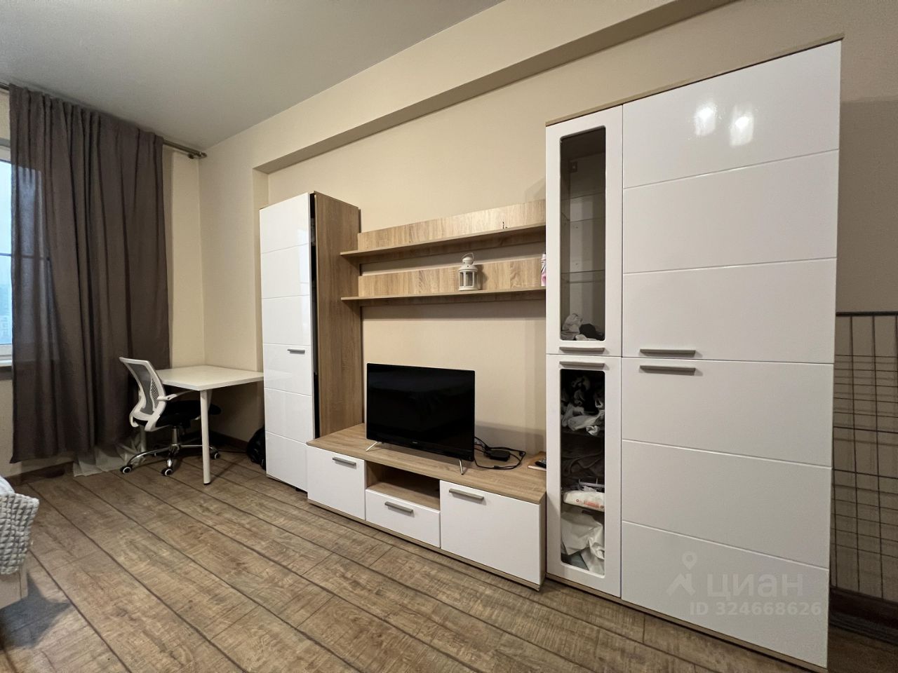 -Выполнена качественная отделка с продуманными инженерными сетями. Стены под покраску. Апартаменты полностью укомплектованы всей необходимой мебелью и бытовой техникой. Кухонный гарнитур и техника в идеальном состоянии, практически не готовили. По всей квартире высокопрочный ламинат 32 класса. В зоне спальной кровать с подъемным механизмом. Шкаф с полочками и телевизором. Шторы сшиты на заказ из плотного бархатного материала. Санузел совмещенный, с качественной сантехникой. Остается стиральная машинка. В прихожей зоне шкаф и вешалка, очень вместительный.