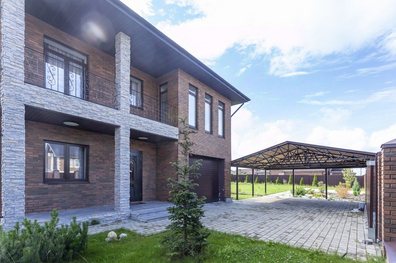 На участке: парковочные площадки, стильный навес для 2х машин, мангальная зона с навесом, деревья, кустарники (клен, рябина, 2 вишни, 2 черешни, яблони, груши, сливы, смородина, крыжовник, голубика и тд.)