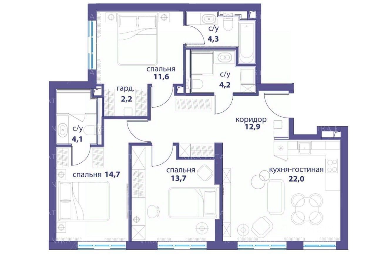 Предлагается к продаже стильная, светлая квартира в доме бизнес-класса ''Событие 3''. Из панорамных окон открывается вид на благоустроенный двор и парк. Отличная планировка: просторная кухня - гостиная, площадью 22м2, три спальни: 13.7м2, 11.6М2 (мастер- спальня) и 14.7м2 (мастер - спальня). Квартира с дизайнерской отделкой, полностью оборудована кухня, установлены кондиционеры. Территория. Территория внутреннего двора огороженная и охраняемая, с системой видеонаблюдения, видеосвязь с консьержем, автоматизированный доступ на территорию. Для детей. Начато строительство общеобразовательного центра, в его состав войдет школа и детский сад. В шаговой доступности расположен парк ''Событие''. Расположение. Квартал СОБЫТИЕ расположен в районе Раменки на престижном западе Москвы. Это один из самых зеленых районов столицы. Также здесь находятся лучшие вузы страны (МГУ им. М. В. Ломоносова, МГИМО, РАНХиГС при Президенте РФ, Академия ФСБ России) и десятки мест для занятий спортом ( в т. ч. Спорткомплекс Олимпийской деревни, Московский гольф-клуб, Спортивный комплекс ''Лужники''). Транспортная доступность. До ст. метро Аминьевская -15мин. пешком, до ст. метро Мичуринский проспект-7 минут пешком, до Воробьёвых гор и делового центра Москва-Сити- 10 минут на автомобиле, до центра 15 минут на автомобиле. Nika Estate- участник ассоциации AREA. Номер в базе: J27146
