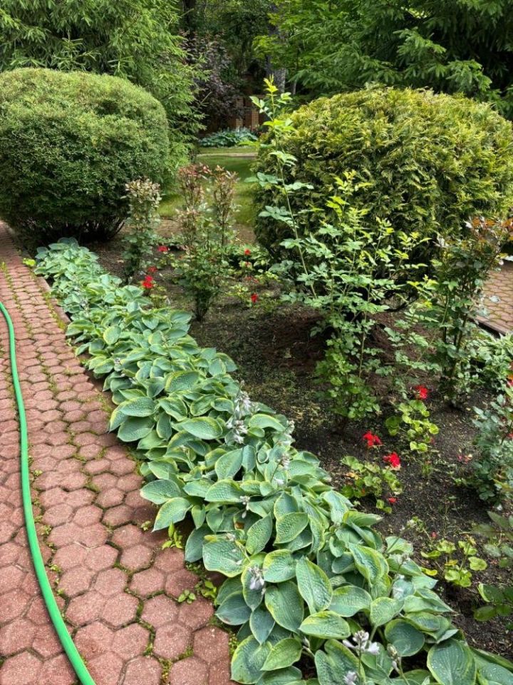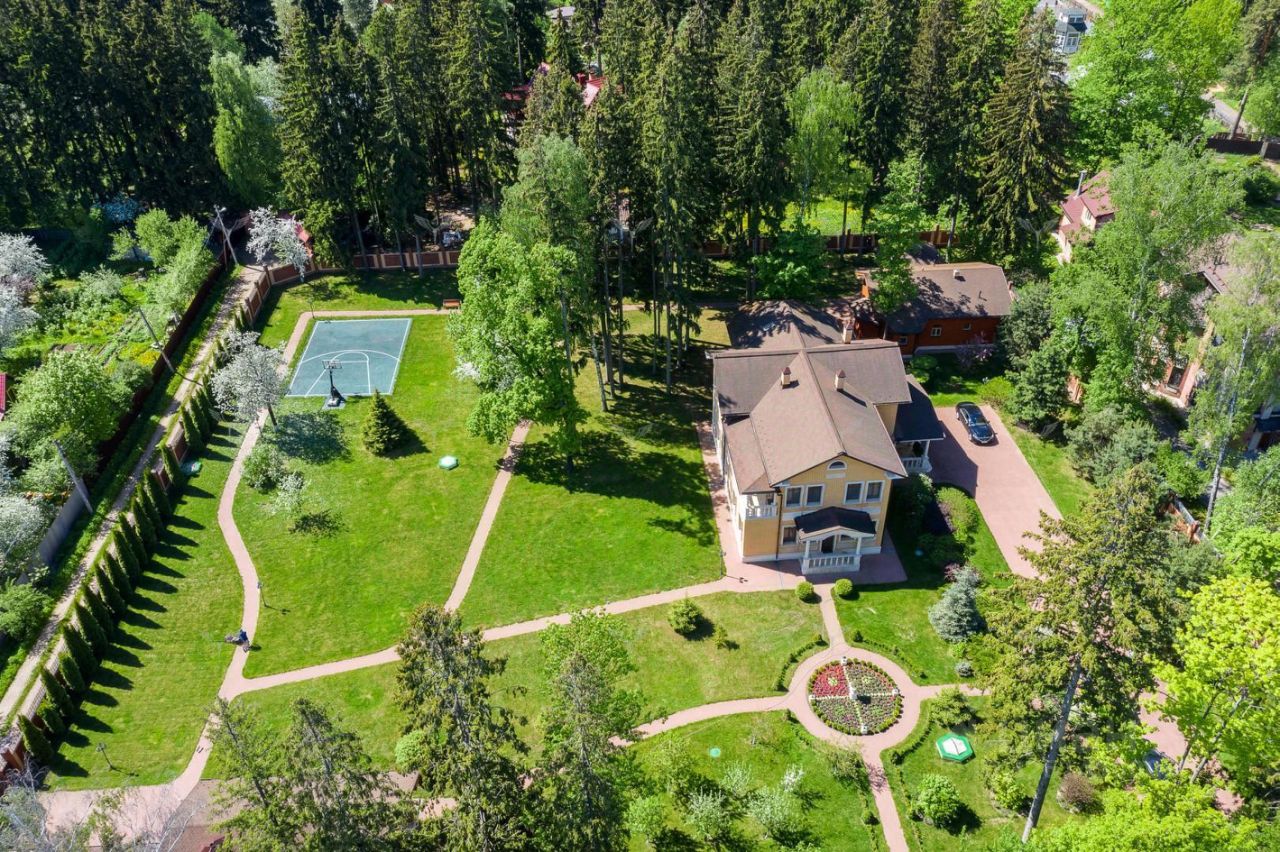 Участок правильной формы с ландшафтным дизайном, куда входит детская и спортивная площадки, фруктовый сад, клумбы, дорожки и лесные деревья ( корабельные сосны, голубые ели, дубы, клены, березы, можжевельник, туя, самшит, шиповник).