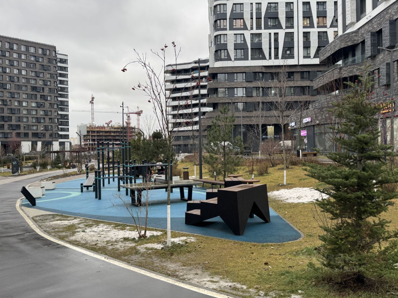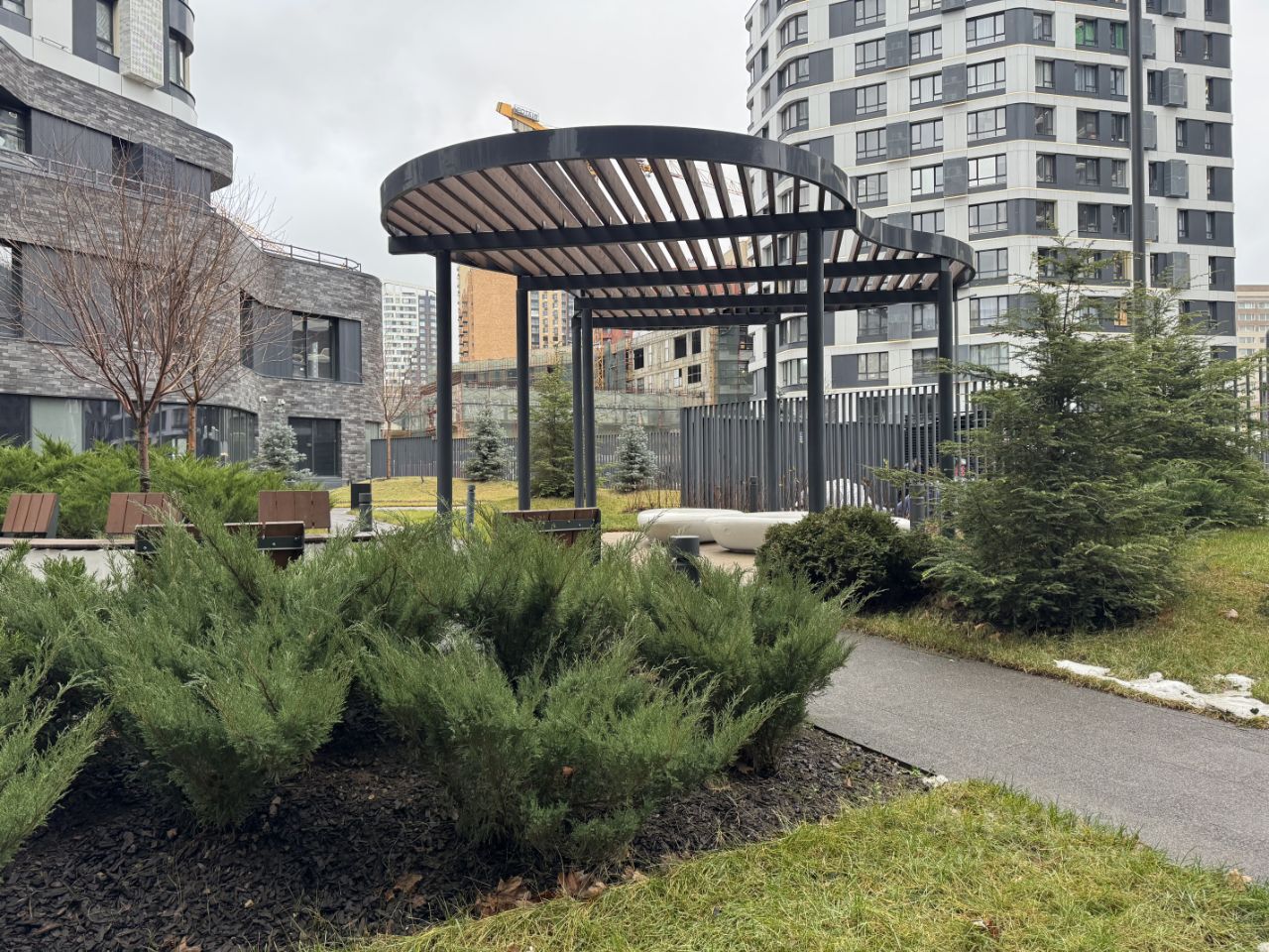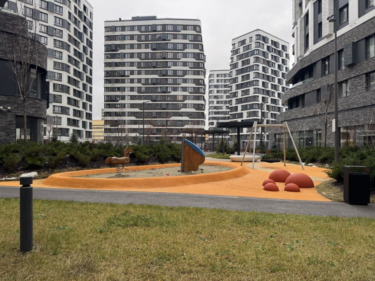 Закрытый двор без машин, подземный паркинг. Много ресторанов и коммерческих помещений на 1 этаже с внешней стороны комплекса. Входные группы с отделкой по авторским дизайн-проектам с мягкими зонами ожидания и лаунж-зоны с дизайнерской мебелью на заказ, стойки ресепшн с консьержем, помещения для колясок и мытья лап домашних питомцев, гостевые санузлы.