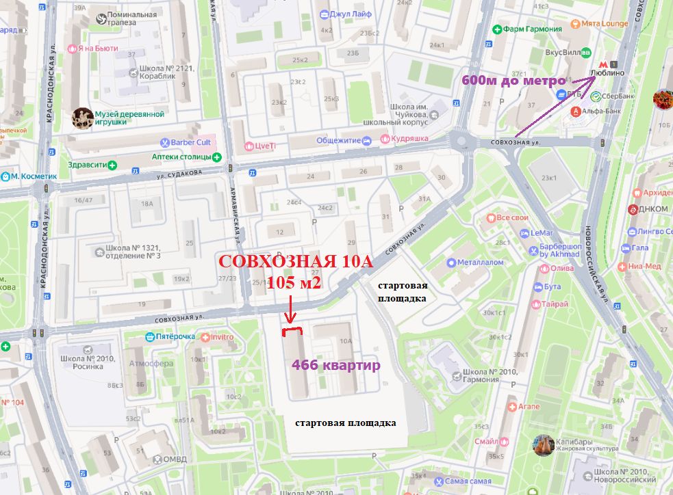 Напишите в чат цифру 500 и я вам скину Схему расположения квартир в радиусе 500м.