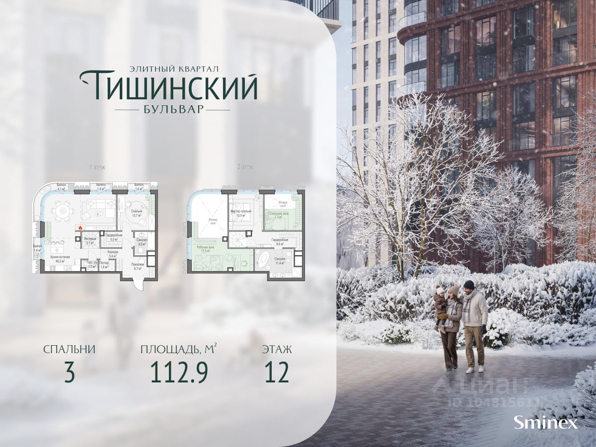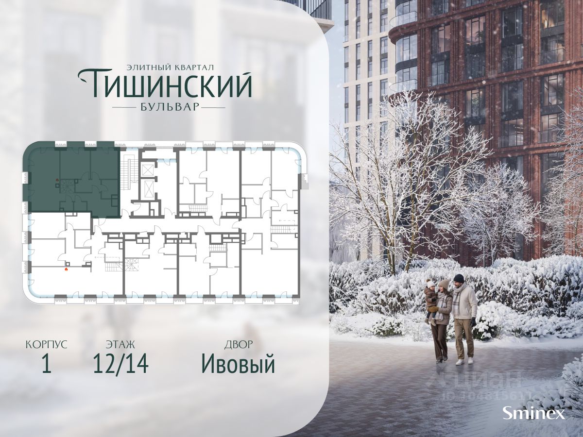 В продаже 3-комнатная квартира квартира в элитном квартале ''Тишинский бульвар''. Общая площадь квартиры - 112.90 кв.м. Этаж 12 из 14. Корпус К4С1.