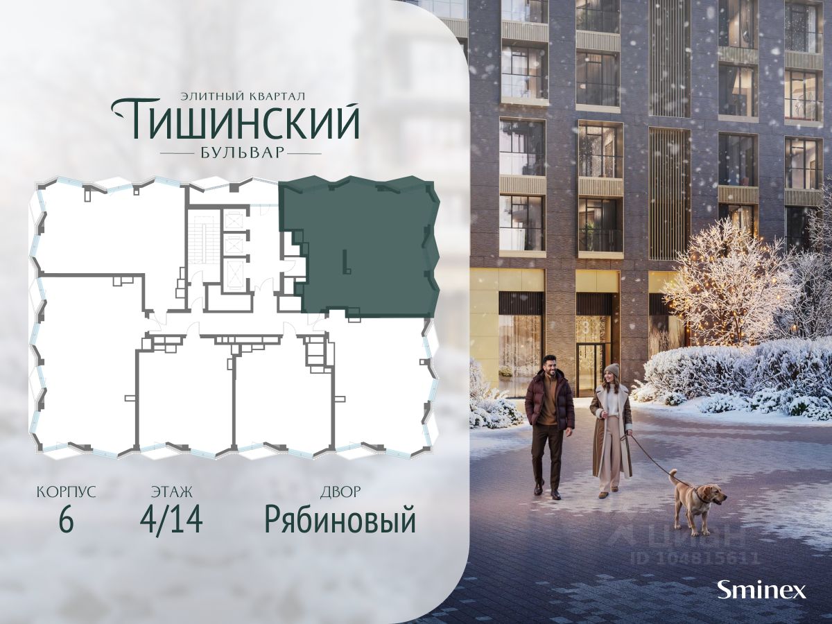 В продаже 4-комнатная квартира квартира в элитном квартале ''Тишинский бульвар''. Общая площадь квартиры - 145.80 кв.м. Этаж 4 из 14. Корпус К6.