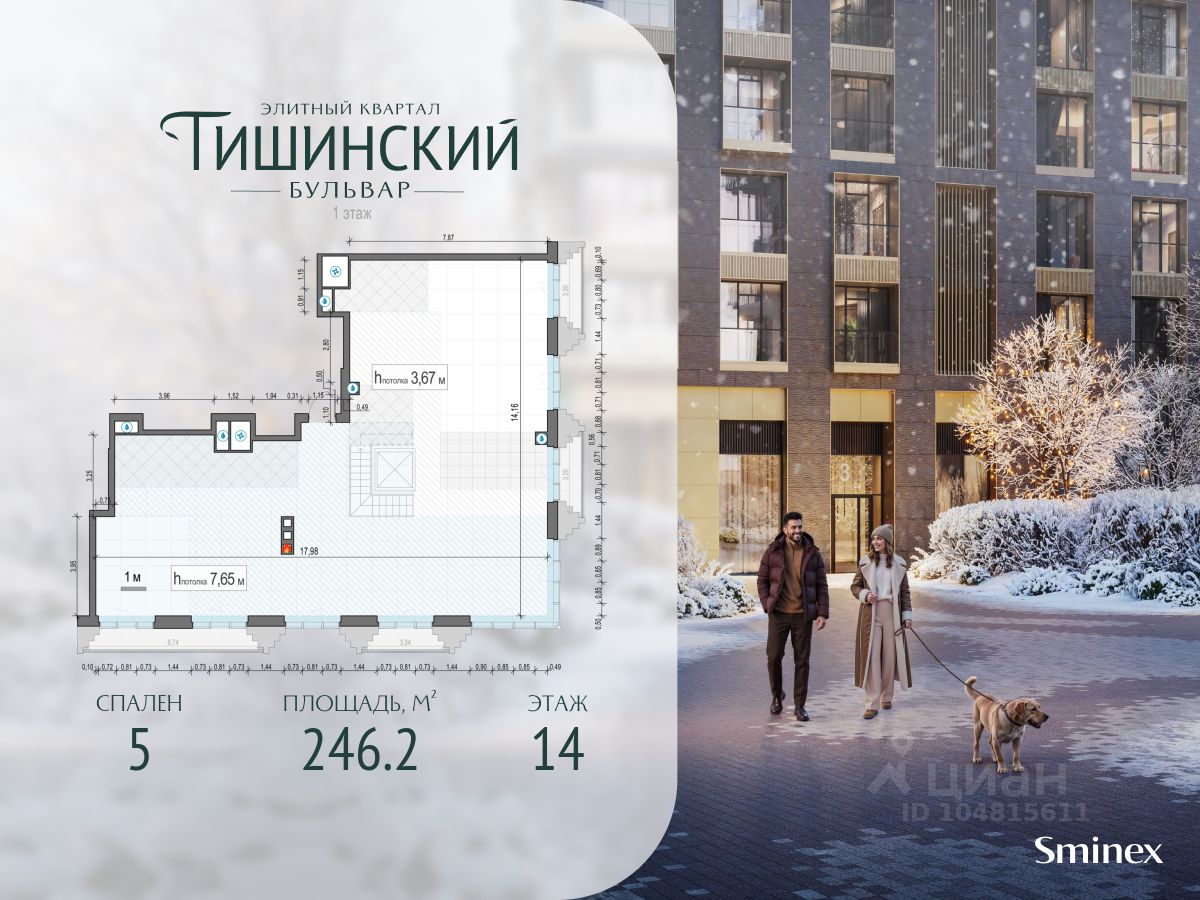 В продаже многокомнатная квартира квартира в элитном квартале ''Тишинский бульвар''. Общая площадь квартиры - 246.20 кв.м. Этаж 14 из 14. Корпус Кленовый 2.