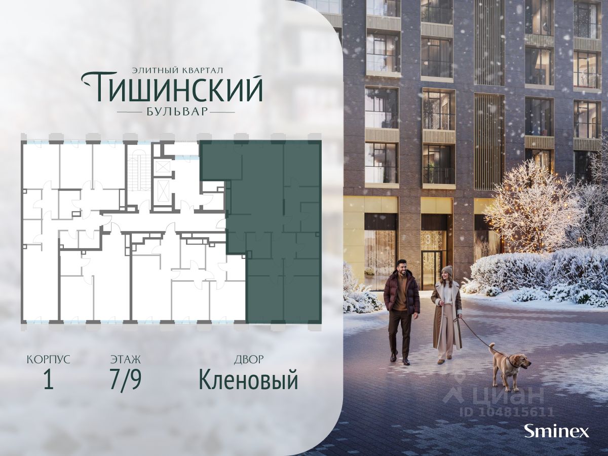 В продаже 4-комнатная квартира квартира в элитном квартале ''Тишинский бульвар''. Общая площадь квартиры - 152.60 кв.м. Этаж 7 из 9. Корпус 8С1.