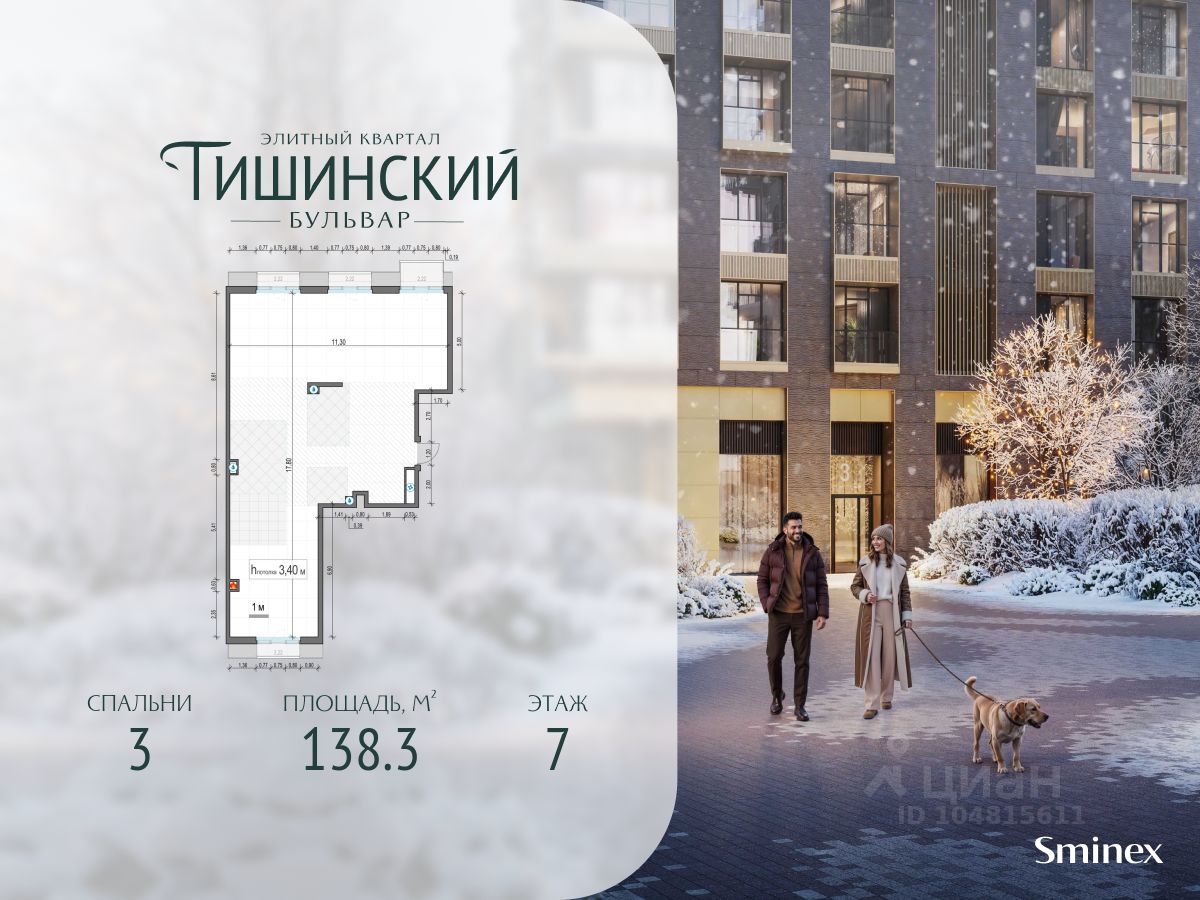 В продаже 3-комнатная квартира квартира в элитном квартале ''Тишинский бульвар''. Общая площадь квартиры - 138.30 кв.м. Этаж 7 из 9. Корпус 8С2.