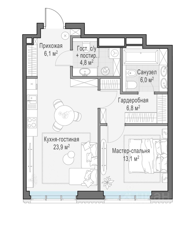 Общая площадь61 м2