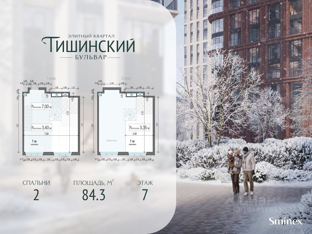 В продаже 2-комнатная квартира квартира в элитном квартале ''Тишинский бульвар''. Общая площадь квартиры - 84.30 кв.м. Этаж 7 из 9. Корпус К5С1.