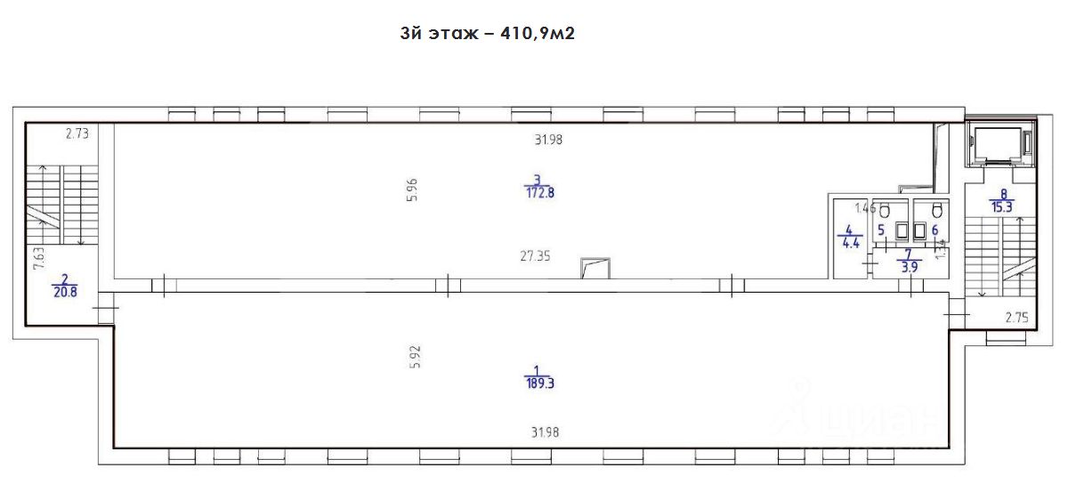 Этот лот состоит из нескольких помещений: 190 кв. м., 411 кв. м. и 4908 кв. м.