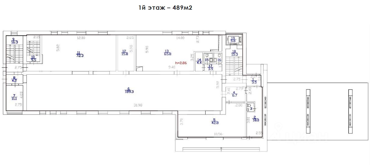Этот лот состоит из нескольких помещений: 173 кв. м., 2910 кв. м., 190 кв. м., 489 кв. м., 411 кв. м. и 4908 кв. м.